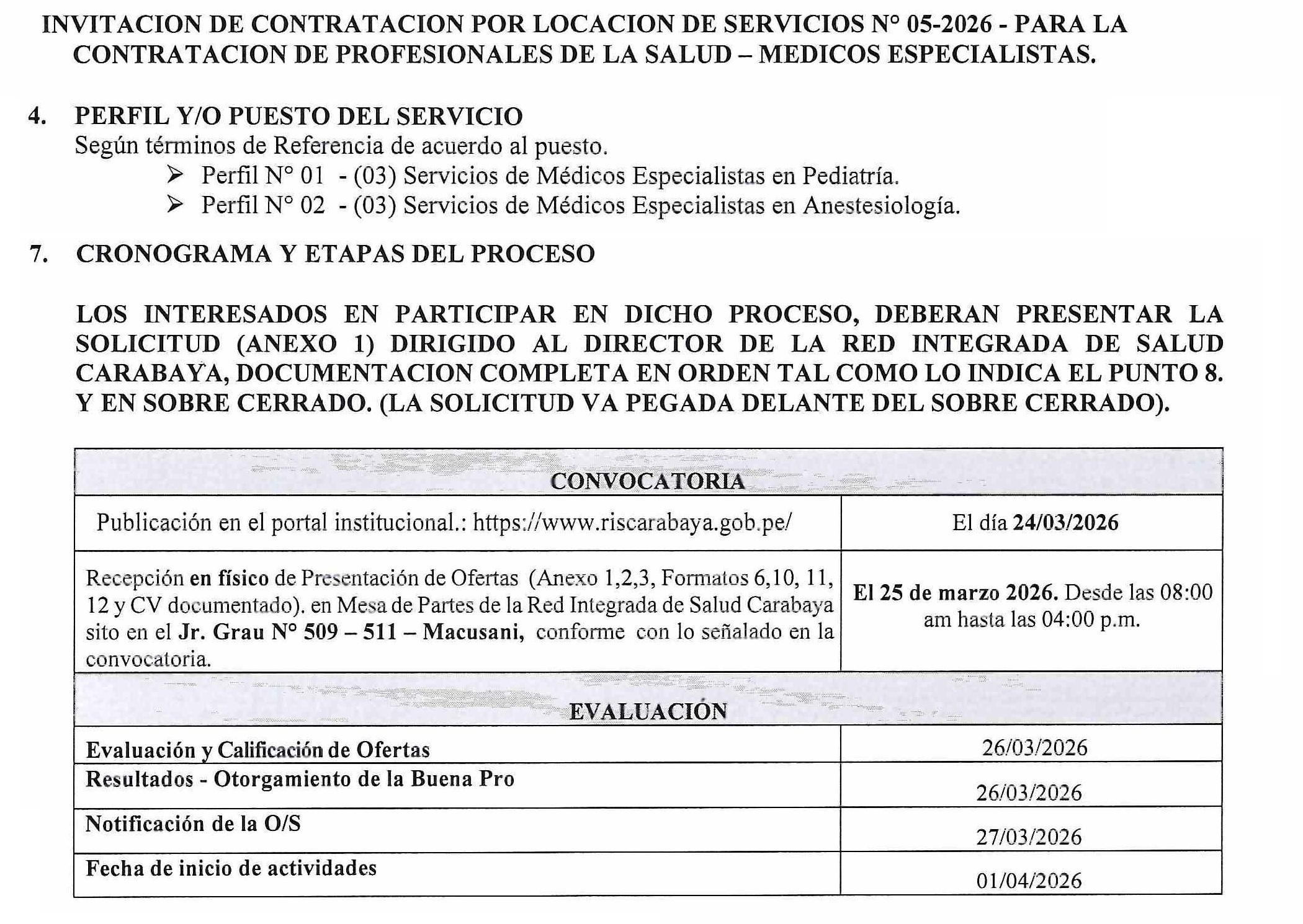Convocatoria Locacion Med. Esp. 005-2026